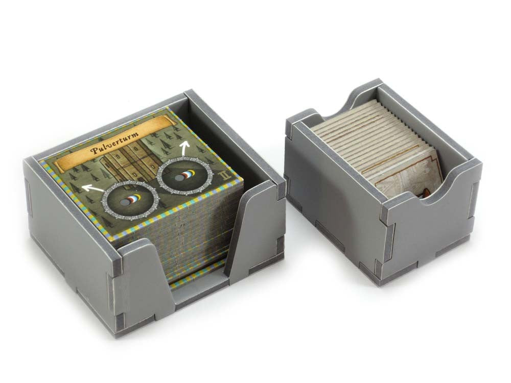 This insert is designed to be compatible with Orleans®, and includes space for the 5th player expansion. The design provides both efficient storage and improved game play. Many of the trays can be utilised during the game, and they greatly aid set-up and clear-away times. The boards and player boards act as a lid on top of the trays.