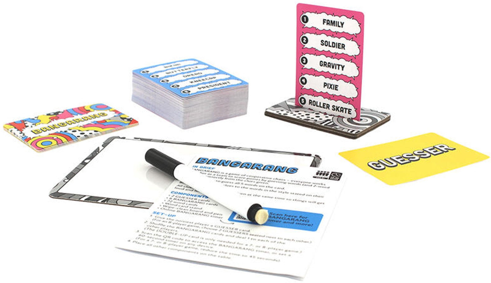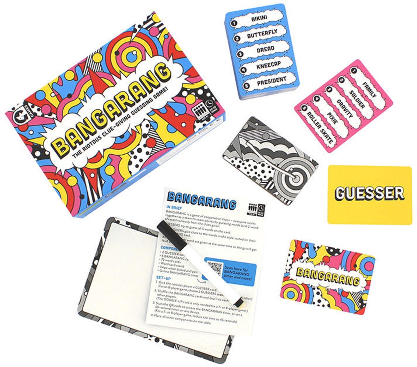 Get ready for a wild ride of laughter, creativity, and teamwork with BANGARANG, the fun family game that takes clue-giving to a whole new level! In this high-energy game, players join forces to help the guesser unravel the mystery word on the card using a variety of entertaining clues.