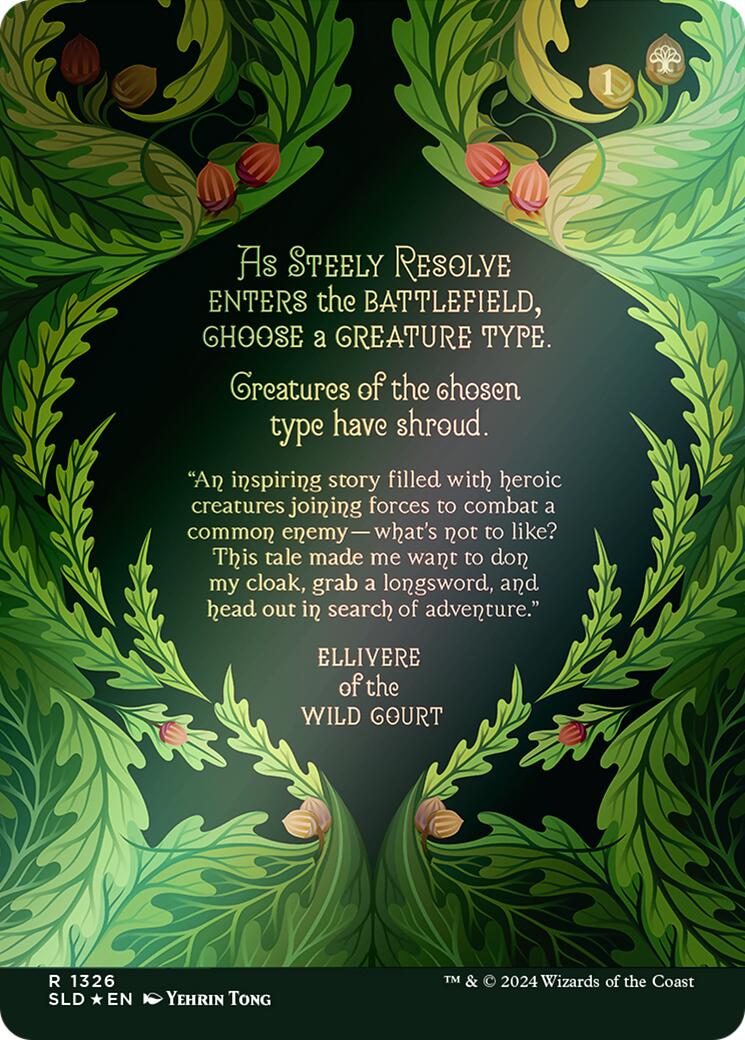 Hurry! Only0units left in stock!Set: Secret Lair Drop Series Type: Enchantment Rarity: Rare Cost: 1G As Steely Resolve enters the battlefield, choose a creature type.